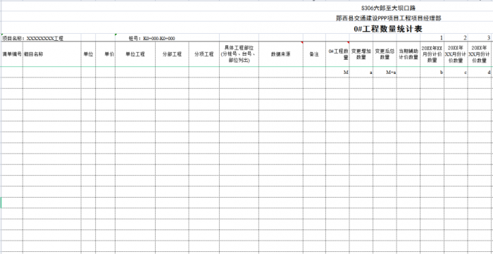 “0#”臺(tái)賬按單位、分部、分項(xiàng)工程劃分標(biāo)準(zhǔn)編制,可以將計(jì)量支付與質(zhì)量檢驗(yàn)評(píng)定有機(jī)結(jié)合起來(lái),這樣可以使質(zhì)檢、測(cè)量、實(shí)驗(yàn)、計(jì)量等部門的內(nèi)業(yè)工作都在同一個(gè)規(guī)則下進(jìn)行,提高了整個(gè)項(xiàng)目(合同段)內(nèi)業(yè)管理的效率。